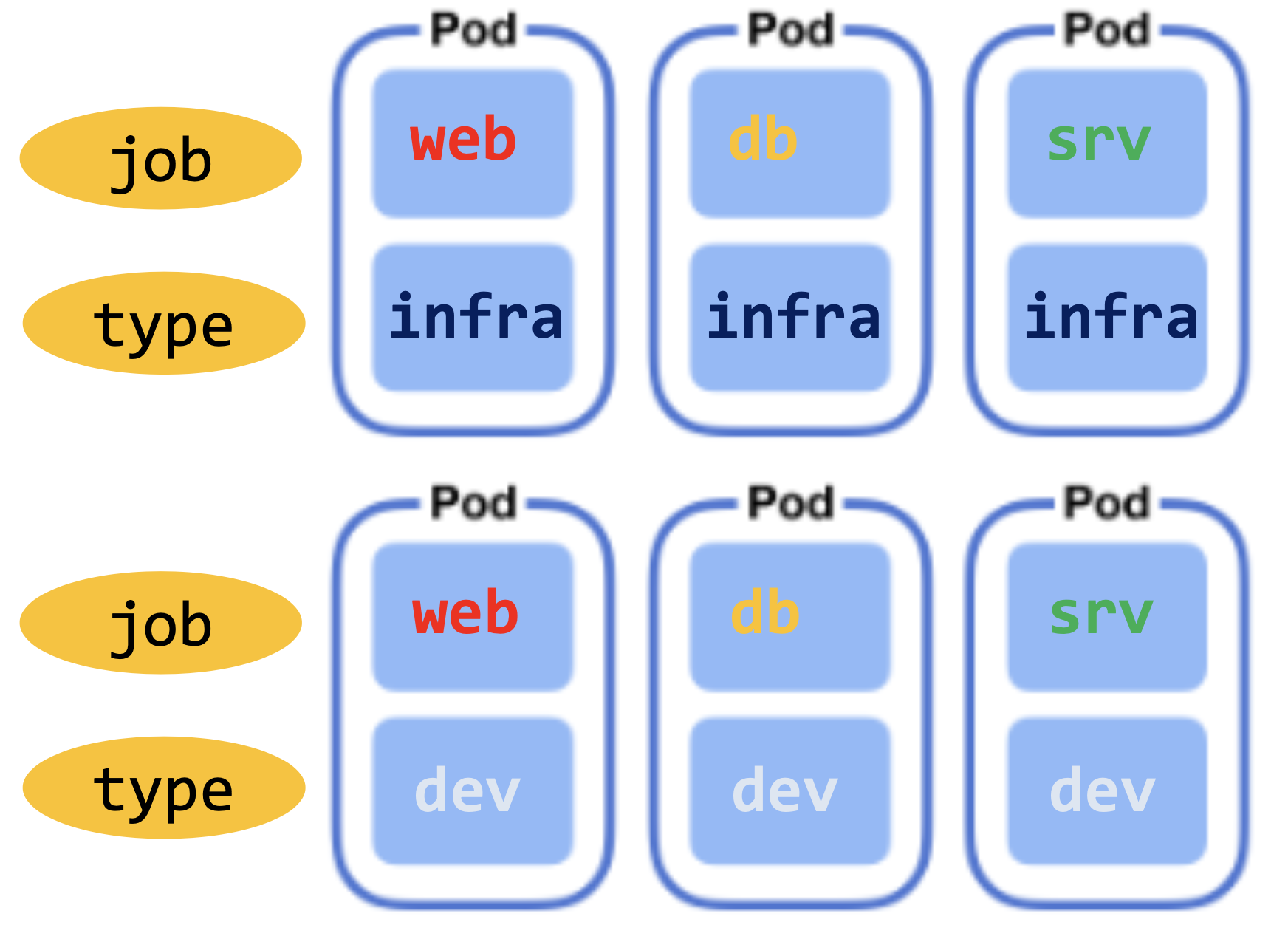 - Label로 선택된 특정 Pod만 배포 업데이트 또는 접근권한을 부여하는 작업 가능